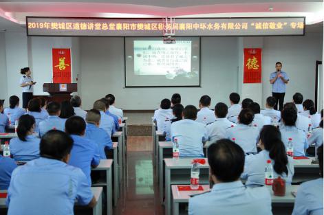7月25日下午,根據(jù)襄陽(yáng)市委宣傳部、市文明辦的要求,襄陽(yáng)中環(huán)水務(wù)有限公司與樊城稅務(wù)局聯(lián)合舉辦了一期主題為“誠(chéng)信敬業(yè)”的道德講堂活動(dòng)。襄陽(yáng)中環(huán)公司紀(jì)委書記、副總經(jīng)理焦為民;財(cái)務(wù)總監(jiān)王平;工會(huì)主席徐玲,以及公司各基層單位、機(jī)關(guān)部室代表參加了活動(dòng)。