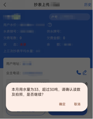 年初,公司完成智慧水務(wù)平臺(tái)營(yíng)收系統(tǒng)升級(jí),新增了手機(jī)抄表、數(shù)電發(fā)票開具、掃碼評(píng)價(jià)等功能,其中“手機(jī)抄表”實(shí)現(xiàn)了用水量異常預(yù)警,在實(shí)際運(yùn)用中發(fā)揮了重要作用。在宜城窯灣八隊(duì)武先生家的例行抄表過(guò)程中,公司抄表員范云飛、李一可通過(guò)“手機(jī)抄表”系統(tǒng)錄入數(shù)據(jù)時(shí),“抄表上傳”頁(yè)面自動(dòng)彈出“本次用水量超過(guò)30噸”的提醒。經(jīng)與用戶過(guò)往平均用水量對(duì)比后,抄表員確認(rèn)該用戶本季度用水量遠(yuǎn)超日常,并在進(jìn)一步觀察中發(fā)現(xiàn)水表持續(xù)緩慢轉(zhuǎn)動(dòng),判斷用戶表后可能存在漏水點(diǎn)。